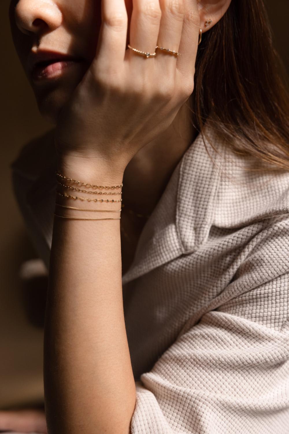 Keeping permanent jewellery simple, thin and light is important because this also makes them easily removable in unpredictable circumstances or in emergencies, pointed out Seah. In case you’re wondering, these chains will go through airport security without a hitch like most delicate jewellery. They may, however, need to be removed prior to medical procedures like an MRI, CT scan, X-ray or surgery – in such cases, the bracelets can be cut open where the jump ring is located, then re-welded for a fee.