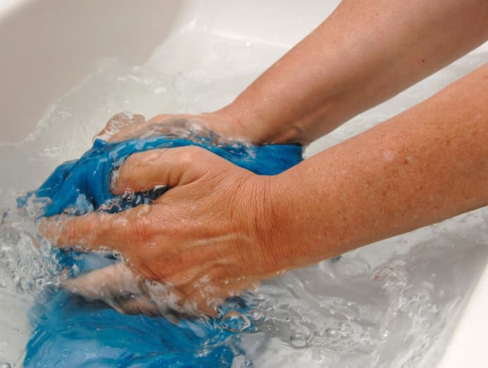 - Remove the clothing from the water and gently squeeze the water from the clothing, but do not completely wring it out.