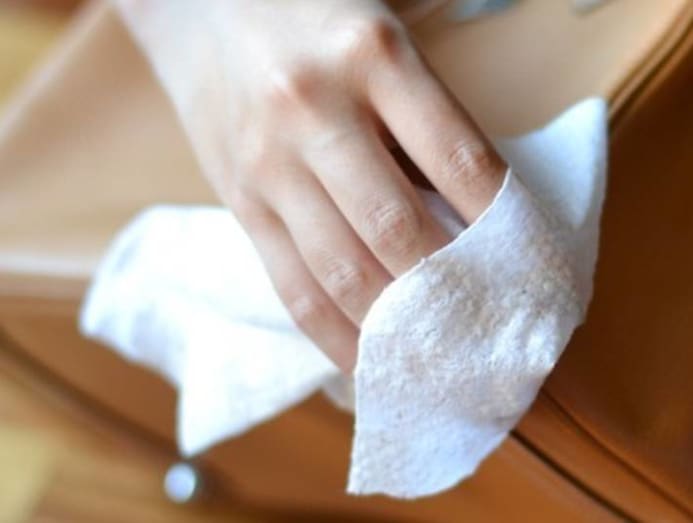 Once you’ve removed most of the stain, go in with a soft cloth dampened with water that is mixed with a tiny bit of laundry detergent. Cecilia Tan, director of The Bag & Shoe Aesthetics, advised against using wet wipes on leather bags because they typically contain alcohol that may damage the leather, especially if you wipe it across an extensive area of the bag.