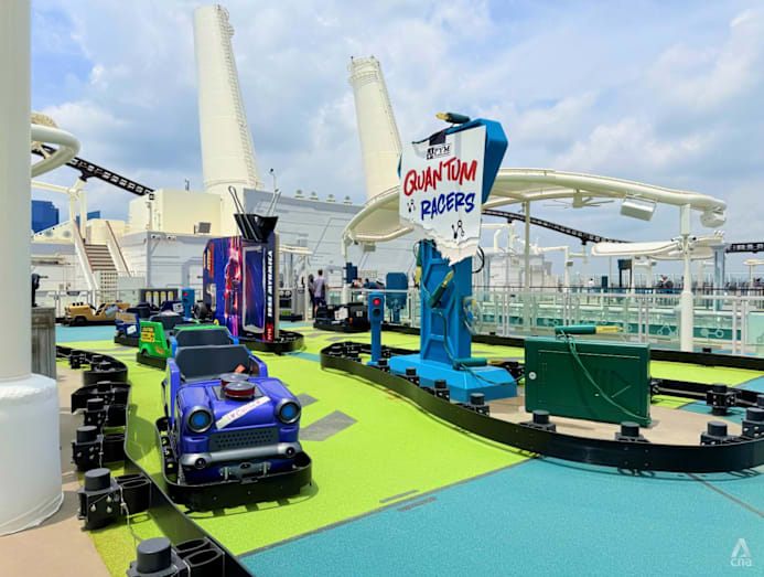 At first glance, the track does not look particularly intimidating. But once the ride begins, it is surprisingly thrilling. Riders go through two laps. The first round is controlled automatically so you can get a feel of the track and enjoy the views around the ship. At one point, the ride dips in a way that makes it feel like you are zooming straight towards the open ocean, which definitely got my heart racing.