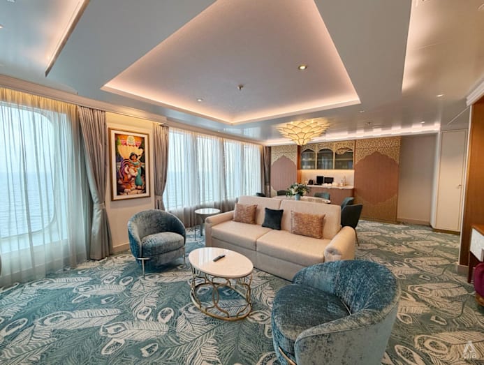 For guests looking to elevate the experience, the ship also offers themed suites, including designs inspired by characters like Jasmine and the Marvel movies. The most luxurious options are the Frozen-themed suites, which span large living areas and include private patios.