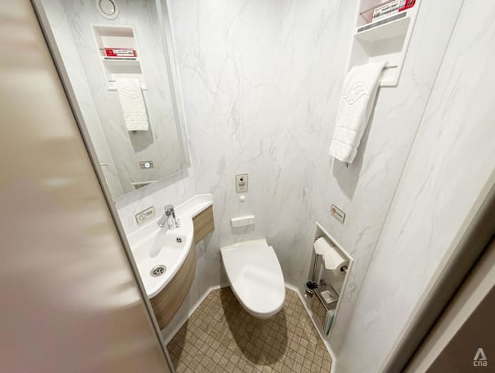 There are also plenty of storage compartments around the cabin, which is important for a small cruise room, as well as charging outlets with USB, two-pin and three-pin plugs located near the bed and dressing table.