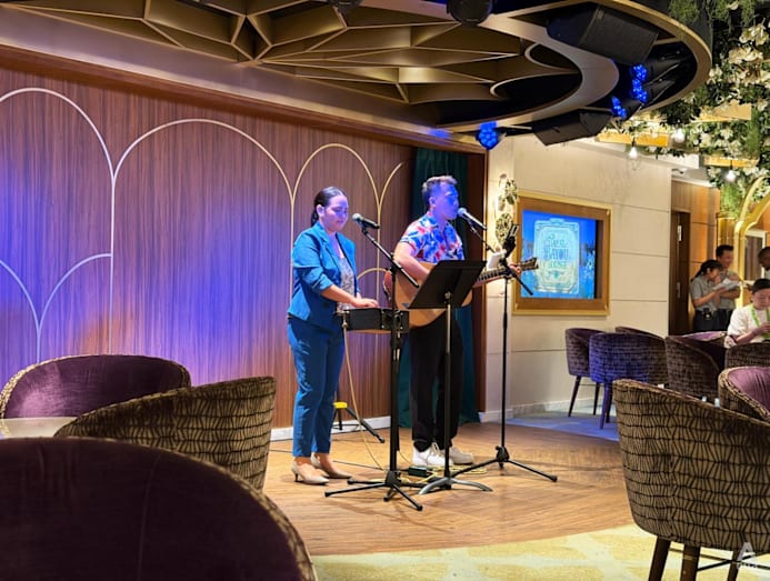 Depending on the schedule, guests can take part in activities such as quizzes testing their knowledge of songs, attend open mic karaoke sessions or learn how to draw characters from the ship’s artists.