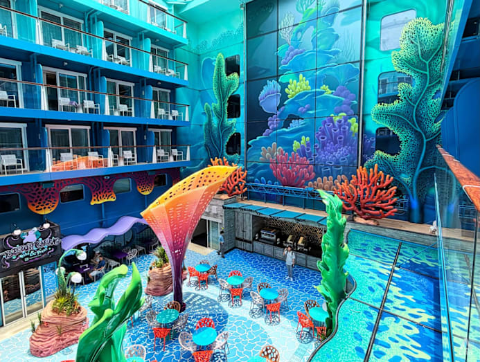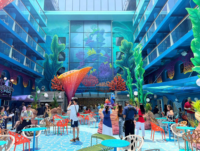 Another visually striking area of the ship is Discovery Reef, inspired by Finding Nemo. The entire space is designed in shades of blue with coral-like structures and ocean-inspired decor, making it feel as though you’ve stepped into an underwater world.