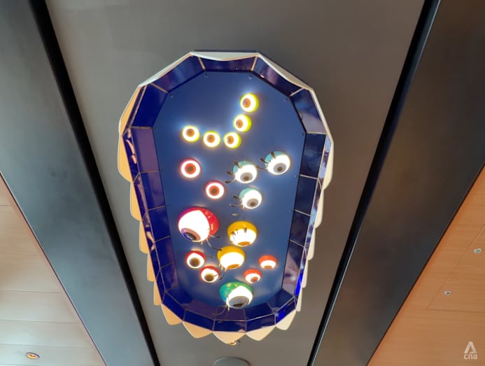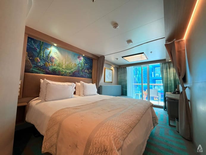 My stateroom also came with a verandah. The moment I stepped outside, I was greeted with a sweeping view of Discovery Reef, one of the ship’s main themed areas inspired by Finding Nemo. The whole space below looks like an underwater world.