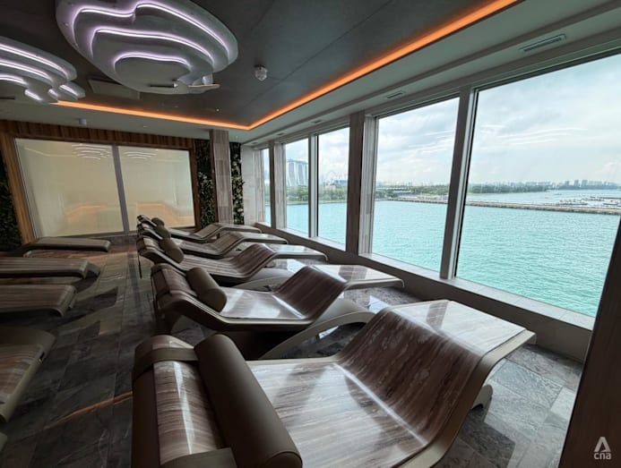 Inside, you will find facilities such as jacuzzis, saunas, steam rooms and heated loungers overlooking the ocean. After spending the day walking around the ship, it felt like the perfect place to relax and recharge.