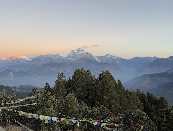 Our trek in the Lower Annapurna range would take us to Ghorepani then Poon Hill before descending through Ghandruk over five days. No camping gear necessary as we would stop at different teahouses every night.