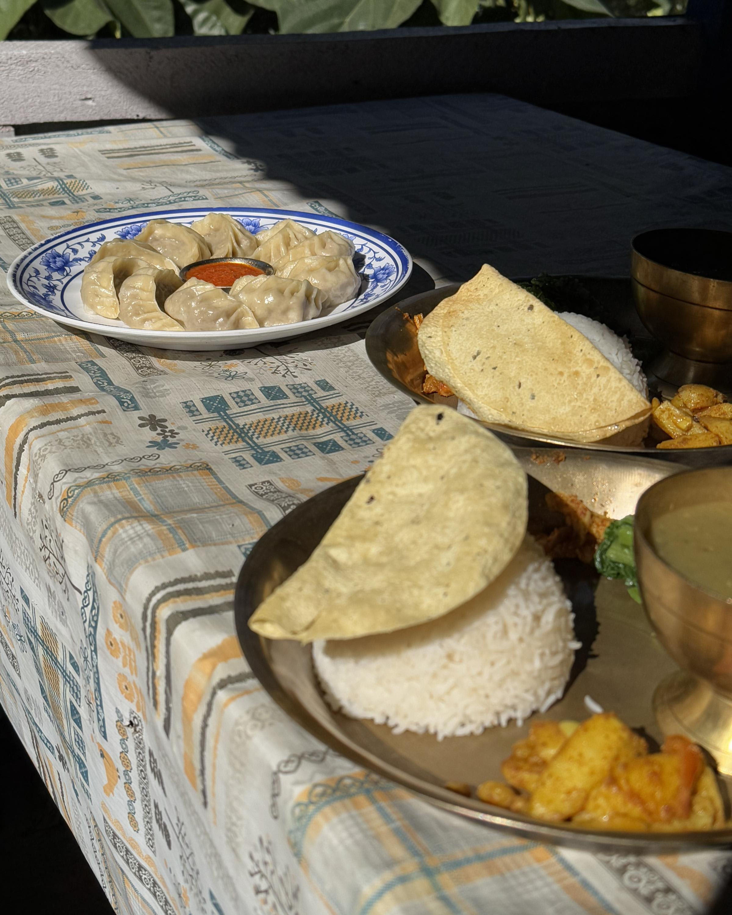 After a whole day of plane travel, I found myself helping a Nepali traveller remove his gold necklace for security checks just before exiting Tribhuvan International Airport. It wasn’t how I imagined our adventure would unfold but it was nice to have a small moment of human connection upon landing amidst the chaos.