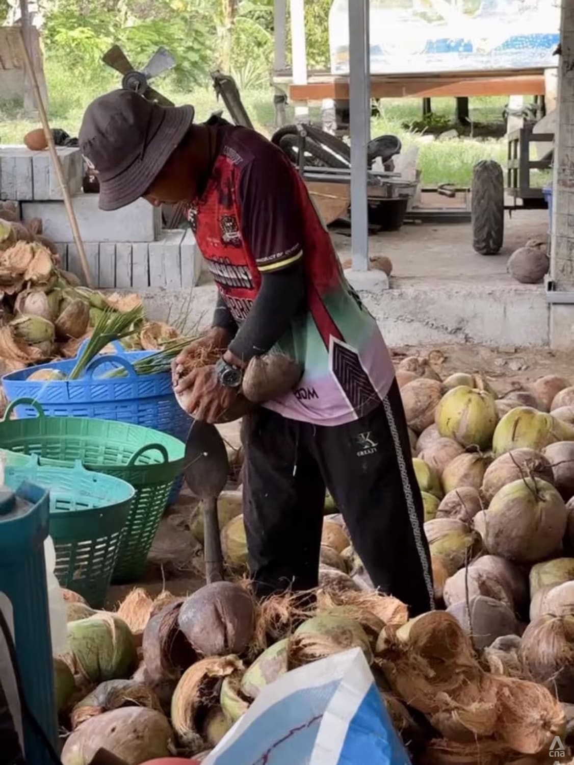 Soralamb did not say how you would be able to tell who was in fact doing the coconut grinding, but his parents and grandparents were all in the coconut business, so he’s living proof that it all worked out.