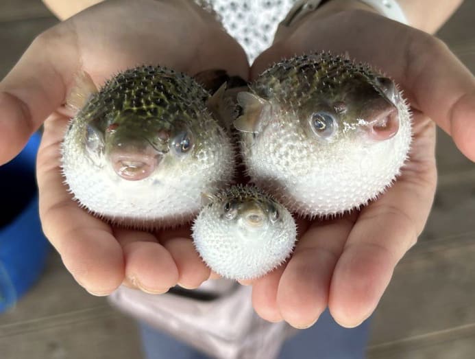 The most memorable part was when he placed the pufferfish in our cupped hands. These smart little fishies first "blew up" as a defence mechanism and looked like poufy fishballs with manga-ish eyes and pink lips. When they were released back in the water, they played dead for a spell, before quickly deflating and zipping off.
