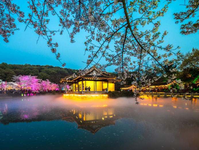 Every March and April, the place – with over 30,000 cherry blossom trees – turns into a sea of delicate pink and white flowers. View the blossoms from various vantage points – as you wander through the pavilions and bridges under the trees and enjoy the falling cherry blossoms like a K-drama heroine, from a sightseeing boat tour on Taihu Lake or climb up winding paths to the mountain top to enjoy a bird’s-eye view. We hear that the night cherry blossom viewing garden party is a must-see. Illuminated at night, it feels like walking into a dreamland.
