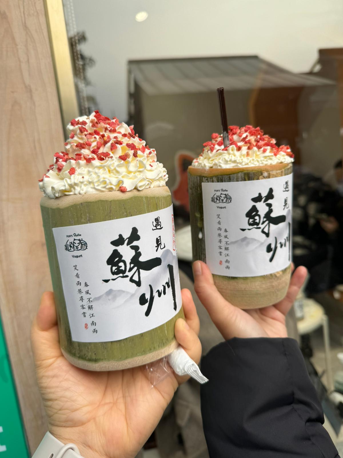 Attracted by the pretty colours of the osmanthus rice cake, we sampled the light and fragrant cake from a street vendor. And of course, I couldn’t leave without China’s internet-famous bamboo milk tea, or zhu tong nai cha. It went viral because of its bamboo cup that is customised to the city you buy it in. I had the jasmine osmanthus oolong with fresh milk, a truly sweet ending to the year.