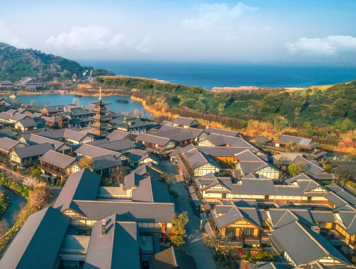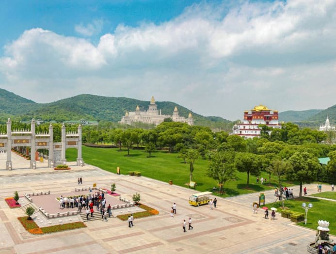 Located within the Lingshan Buddhist scenic area, Nianhua Bay is a resort town for guests to experience Zen-themed inns, tea ceremonies, ikebana, and incense traditions.
