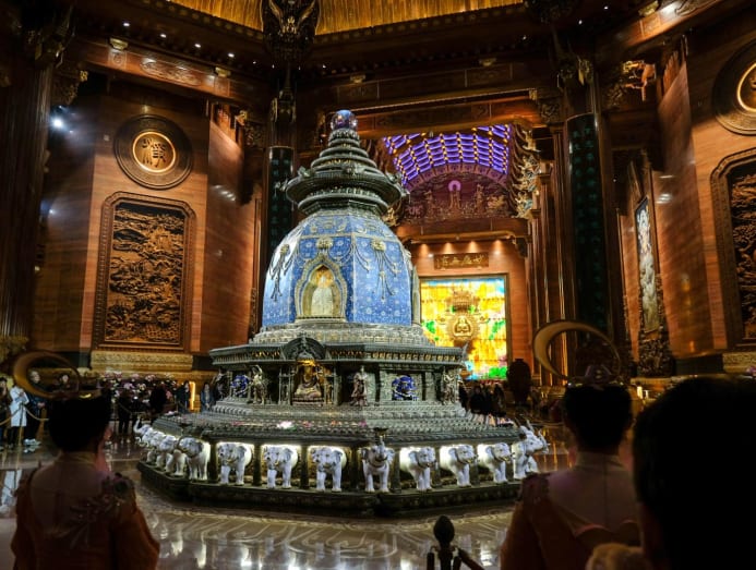 We also took part in the pagoda flower offering activity at the Lingshan Brahma Palace. In this sacred hall of Buddhist culture and art, the opulent interiors, intricate dome and floor-to-ceiling panels are nothing short of stunning.