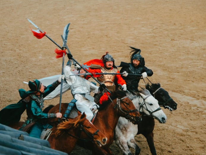 The generals thunder past on horseback, their spears locked in a fierce duel. The troops sit astride on their horses, geared for attack, before carefully choreographed warfare reigns on the battlefield. It’s an exhilarating display of steely might and showmanship. This is the closest I can get to one of the most famous battles in Chinese history, with the reenactment of The Battle of Three Heroes against General Lu Bu.
