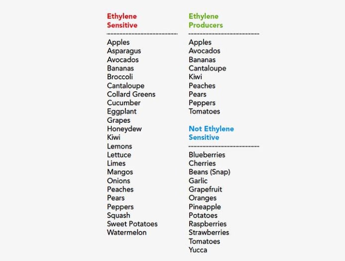 Some fruits and vegetables release a ripening gas known as ethylene; meanwhile, certain produce are more sensitive to ethylene than others.