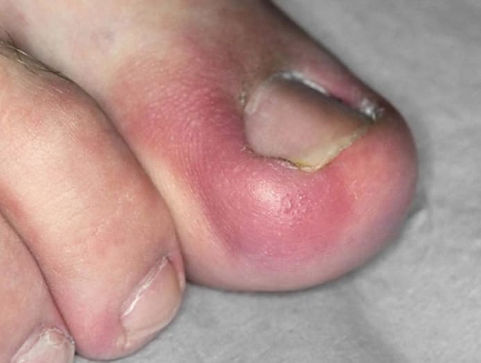 You'll know you have an ingrown toenail when putting on your shoes is painful. It feels tender, swollen or even hard. There may also be pus, bleeding or skin growing around the toe.