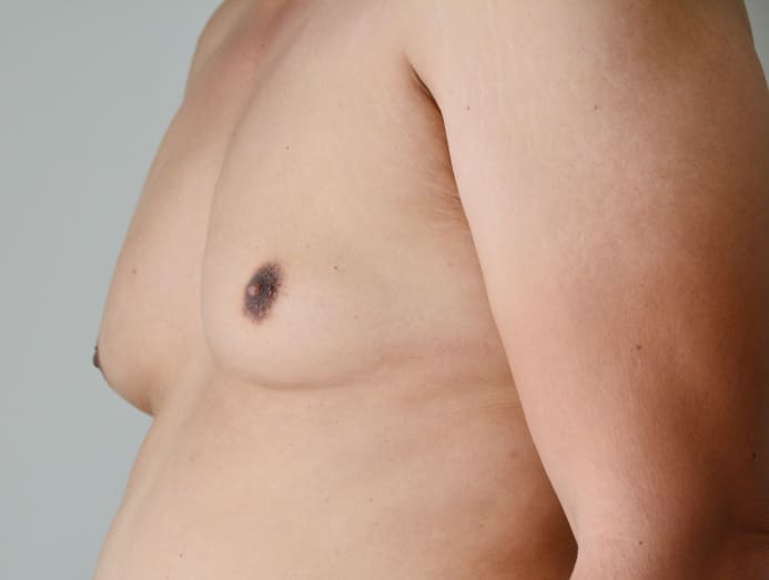This, coupled with more oestrogen from the accumulated body fat, means another round of hormonal upheaval that can cause excess breast tissue growth, according to the NHS website.
