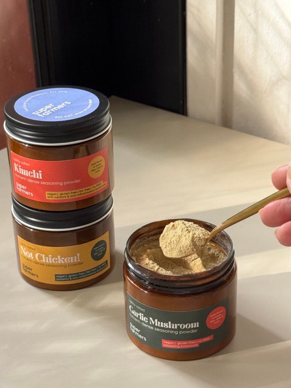 All of Super Farmers’ instant broth powders and noodles are vegan and contain no fillers or preservatives. Flavours include Not Chicken!, which mimics chicken soup flavour, Kimchi, and Garlic Mushroom. They’re available on her website.