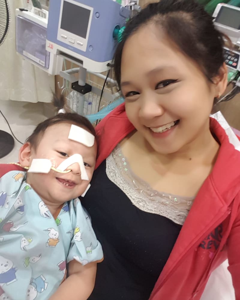 The couple took turns staying overnight in the hospital with Faris. Despite her husband’s multiple jobs, he would care for Faris in the ICU while Norhaziqah managed matters at home and looked after Farrell.